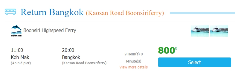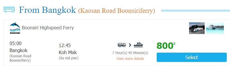 การบริการรถ+เรือ ในเส้นทาง (กรุงเทพ ถนนข้าวสาร ) ไปเกาะหมาก จะมีให้บริการเพียงวันล่ะ 1 รอบเท่านั้นค่ะ
