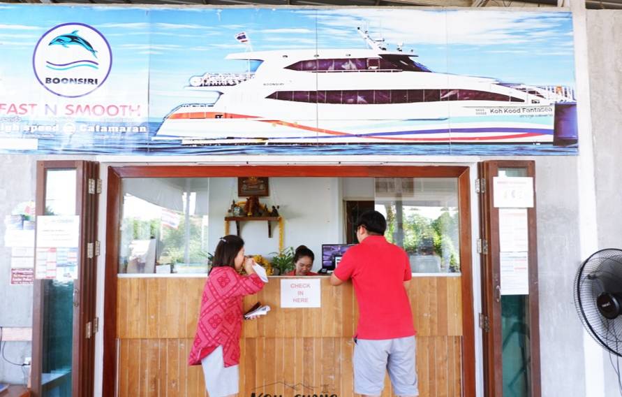พอมาถึงออฟฟิศ ให้เดินเข้ามาเชคอินในออฟฟิศได้เลยค่ะ จะเปิดเชคอินตั้งแต่เวลา04.00น. ค่ะ สามารถใช้ voucher ที่ทางบริษัทจัดส่งให้เชคอินกับพนัก ค่ะ สามารถเปิดผ่านมือถือแสดงให้พนักงานดูได้ค่ะ เนื่องจากบริษัทให้บริการเดินเรือไปยัง เกาะกูด เกาะหมาก เกาะช้าง ทำให้มีปริมาณ นักท่องเที่ยว จองรถจากทาง กรุงเทพค่อนข้างมาก กรุณาสำรองที่นั่งก่อนล่วงหน้าอย่างน้อย 3 วัน กรณีจะเดินทางในวันหยุดเทศกาล กรุณาสำรองที่นั่งล่วงหน้าอย่างน้อย 1 เดือนค่ะ สำรองที่นั่ง ตามช่องทางต่าง เช่น Tel : 0829400005 , ID line : ferryadvice 2 , www.ferryadvice.com