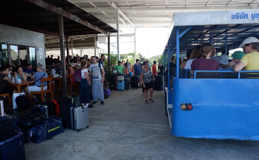 เวลา ประมาณ 10.20 น. พนักงานก็จะประกาศให้เรานั่งรถลาก เพื่อจะไปส่งที่ท่าเรือแหลมศอกค่ะ เนื่องจากออฟฟิศ อยู่ห่างจากท่าเรือประมาณ 1 กิโลค่ะ ใช้เวลานั่งรถประมาณ 10 นาทีค่ะ จากนั้จะมีพนักงานเชคตั๋วก่อนลงเรือค่ะ