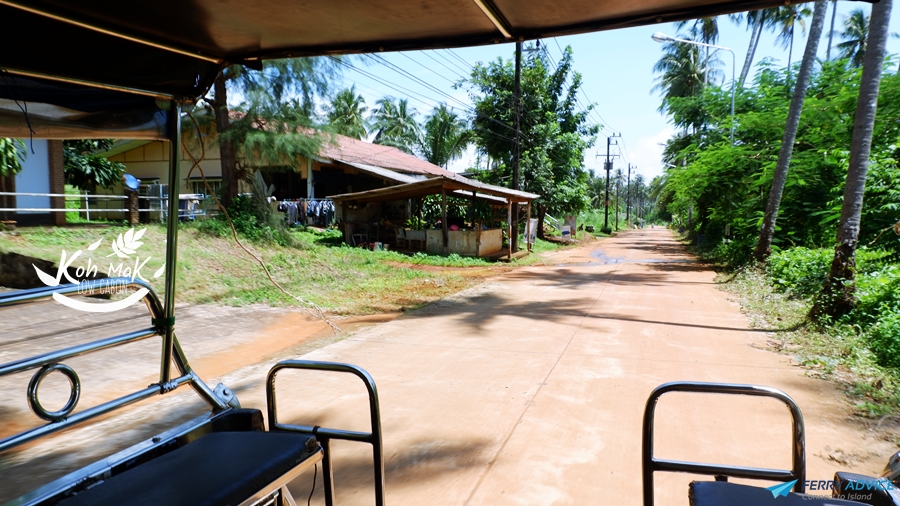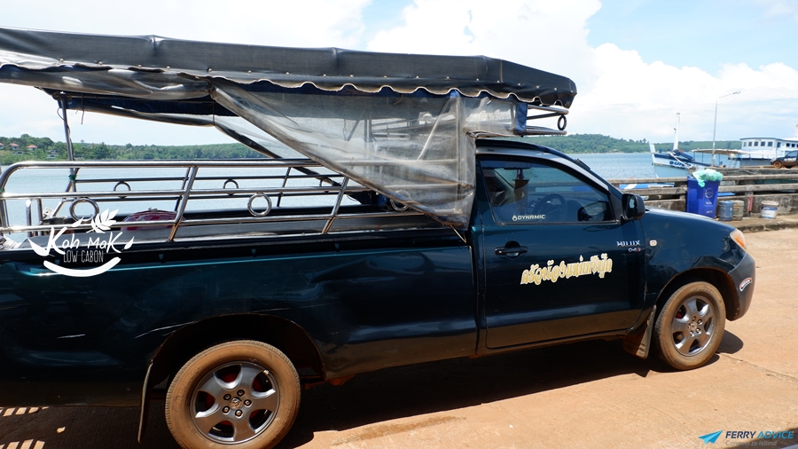 ตอนนี้เราอยู่ที่ท่าเรืออ่าวนิดค่ะ นักท่องเที่ยวที่เดินทางโดยสปีดโบ๊ท จะต้องโทรแจ้งรีสอร์ทล่วงหน้าให้มารอรับที่ท่ารเรืออ่าวนิดค่ะ เป็นบริการฟรีจากรีสอร์ท ซึ่งรีสอร์ทบนเกาะหมากส่วนมาจะมีบริการรับส่งฟรีอยู่แล้วค่ะ หรือถ้าต้องการไปทันทีจะมีรถ Taxi สองแถวจอดรอบริเวณท่าเรือ สนนราคา คนละ 50 บาท ไปได้ทั่วเกาะ คุ้มคะเพราะเค้าต้องพาเราลุยไปส่งยังรีสอร์ท บางแห่งอยู่ไกลมาก เค้าก็ไปคะ