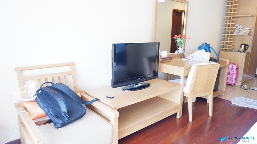 สิ่งอำนวยความสะดวกภายในห้อง ก็คล้ายๆ รีสอร์ทอื่นทั่วๆไปค่ะ แต่ถ้าเทียบกับเกาะเล็กๆแบบนี้ ถือว่าที่นี้มีครบทุกอย่าง ทั้ง ทีวี ตู้เย็น ตู้เชพ ซึ่งรีสอร์ทส่วนมากบนเกาะหมากจะไม่ค่อยมีค่ะ