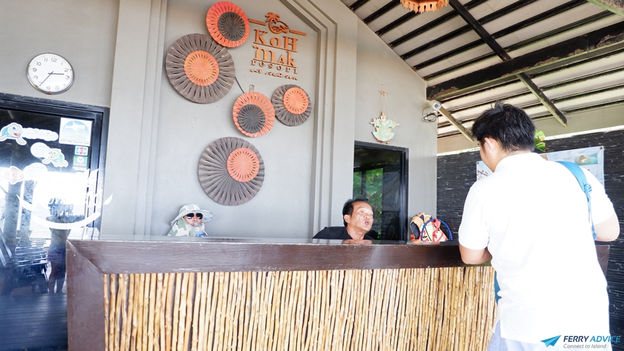 ติดต่อเชคอินที่เคาน์เตอร์ กับพนักงานที่รับเชคอินได้เลยค่ะ พนักงานจะสอบถามว่าพักที่รีสอร์ทไหน บนเกาะช้าง พอถึงเกาะจะได้มีรถไปส่งที่รีสอร์ทค่ะ