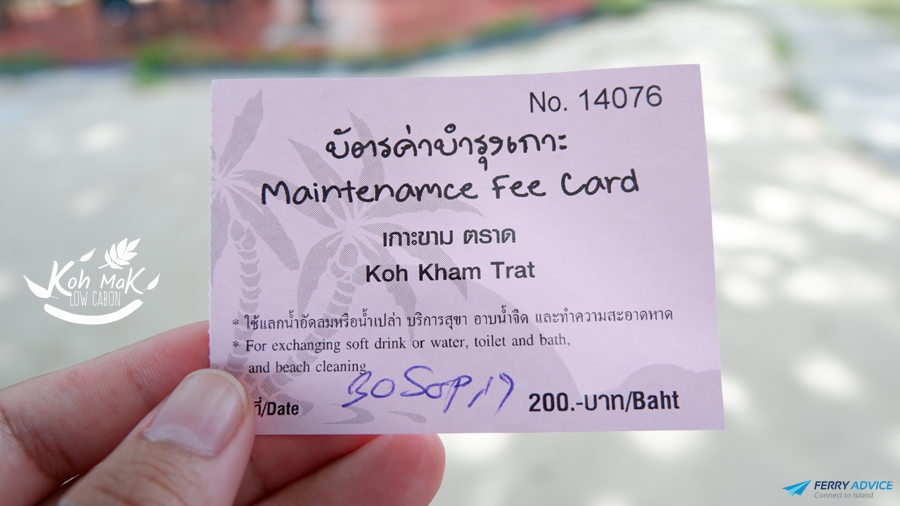 เราจะได้บัตรเข้าเกาะขามมาค่ะ คนล่ะใบ อันนี้ต้องเก็บไว้ให้ดีนะค่ะ เพราะจะมีพนักงานตรวจบัตรก่อนเข้าเกาะอีกครั้งค่ะ และบัตร 1 ใบแลกน้ำอัดลมดื่มได้ 1 กระป๋องค่ะ