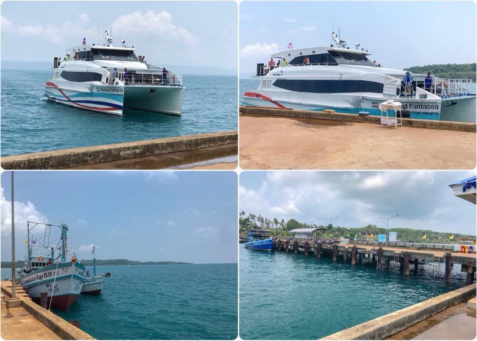เรือมารับแล้วค่ะ เราจะใช้เวลาประมาณ 1 ชม.25 นาที จากท่าเรือ อ่าวนิด เรือจะวิ่งผ่านเกาะกูด แล้วไปส่งเราที่ ท่าเรือแหลมศอก จะมีรถของบริษัทเรือบุญศิริมารอรับเพื่อไปส่งที่ ออฟฟิศ และพักประมาณ 40 นาที หลังจากนั้นก็เชคอินขึ้นรถบัสที่ ออฟฟิศเดินทางกลับ กทมค่ะ
