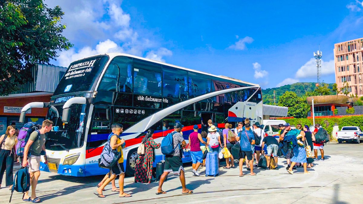 รถบัสที่ให้บริการเป้นรถบัสขนาดสองชั้น ปรับอากาศ 44 ที่นั่งมีห้องน้ำภายในรถ รถบัสจะใช้เวลาเดินทางจาก จังหวัดภูเก็ตไปยังท่าเรือ ดอนสัก จังหวัดสุราษฎร์ธานีประมาณ 3.30 ชม .