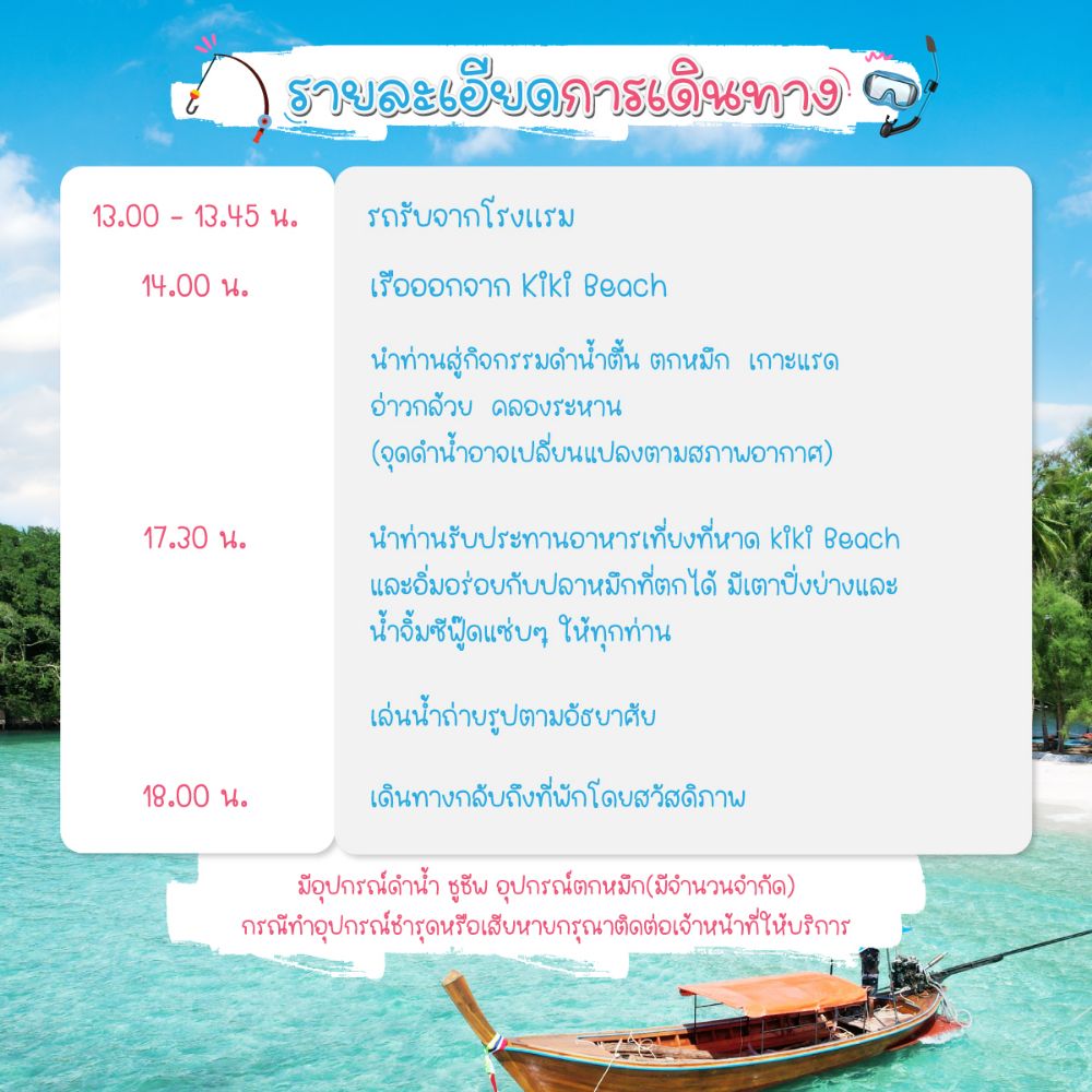 หากมีข้อสงสัยสอบถามโปรดติดต่อไกด์หรือเจ้าหน้าที่ให้บริการบนรถและเรือ