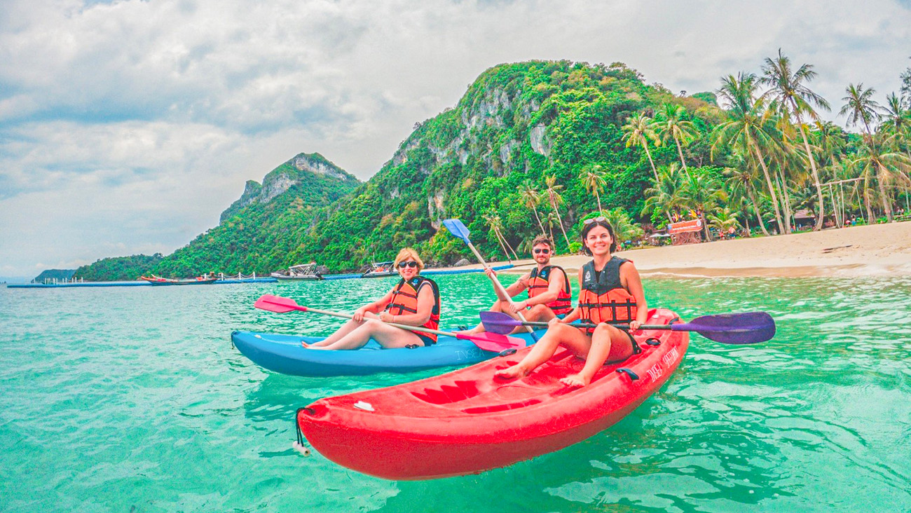- นักท่องเที่ยวสนุกสนานผ่อนคลายกับการพายเรือคายัค