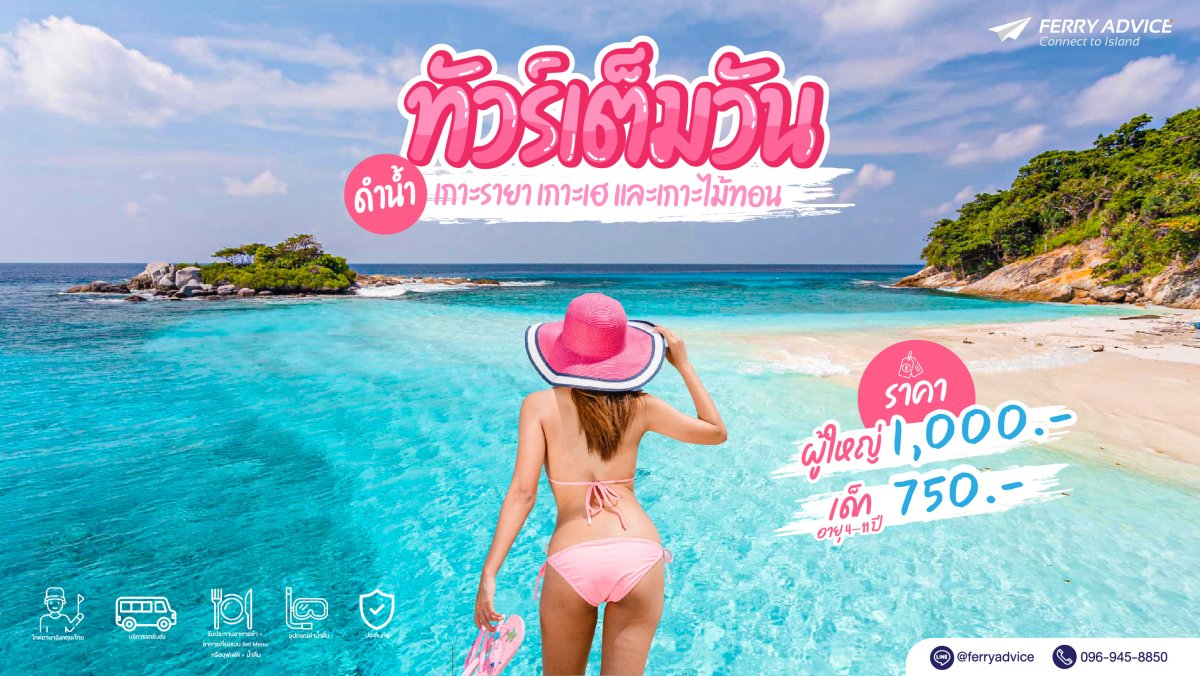 ทัวร์เต็มวัน ดำน้ำ เกาะรายา เกาะเฮ และเกาะไม้ทอน
