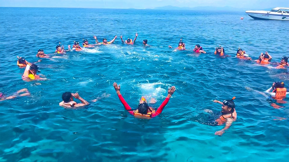 09:30 น. ออกจากท่าเรือฉลองเพื่อพักผ่อนที่เกาะเฮ