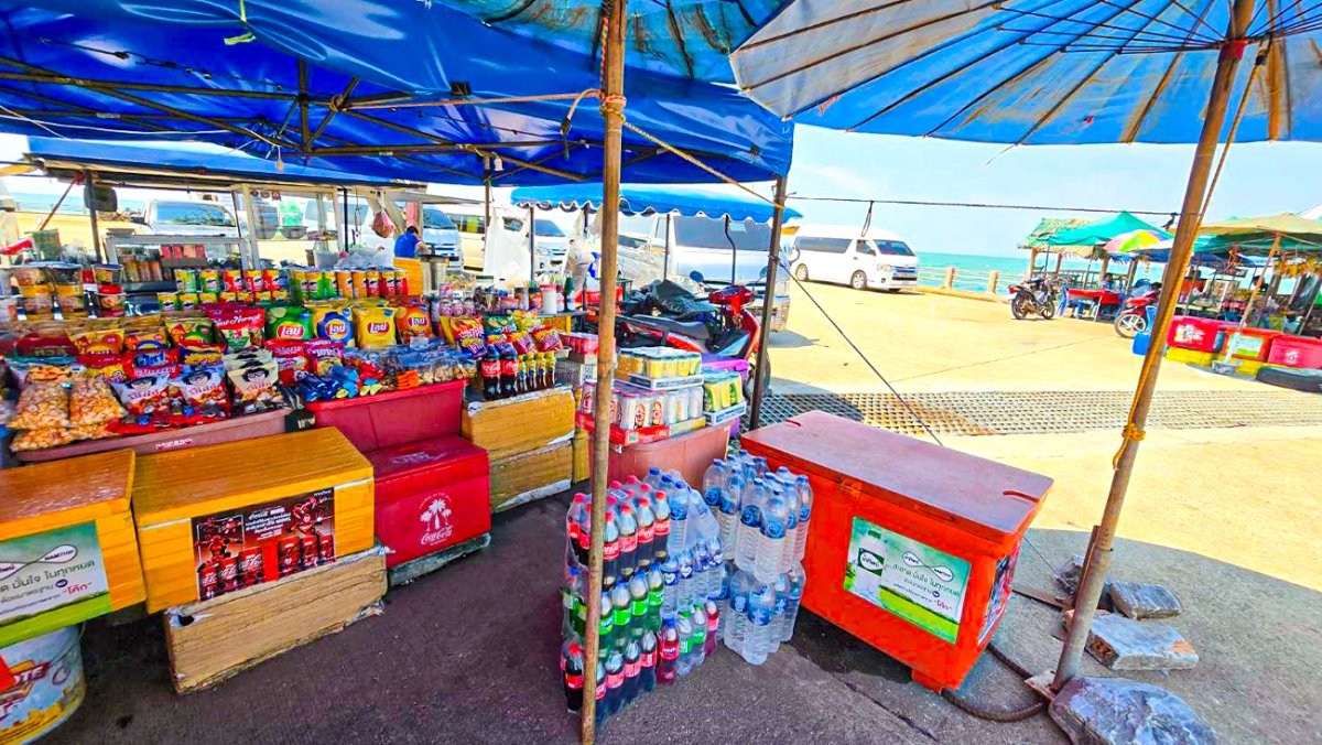 บริเวณท่าเรือมี อาหาร ขนม และน้ำดื่มจำหน่าย สำหรับนักท่องเที่ยวที่เดินทางมาท่าเรือสามารถเลือกซื้อหารไปทานบนเรือได้