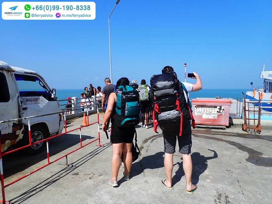 หลังจากเชคอินได้รับตั๋วเรือเรียบร้อยแล้ว คุณต้องเดินไปขึ้นเรือที่ท่าเรือประมาณ 400 เมตร เรือจะจอดเทียบอยู่ รอบเรือส่งเสริมจากท่าเรือดอนสัก มีให้บริการวันล่ะ2 รอบ รอบ 10.00 กับ 16.00