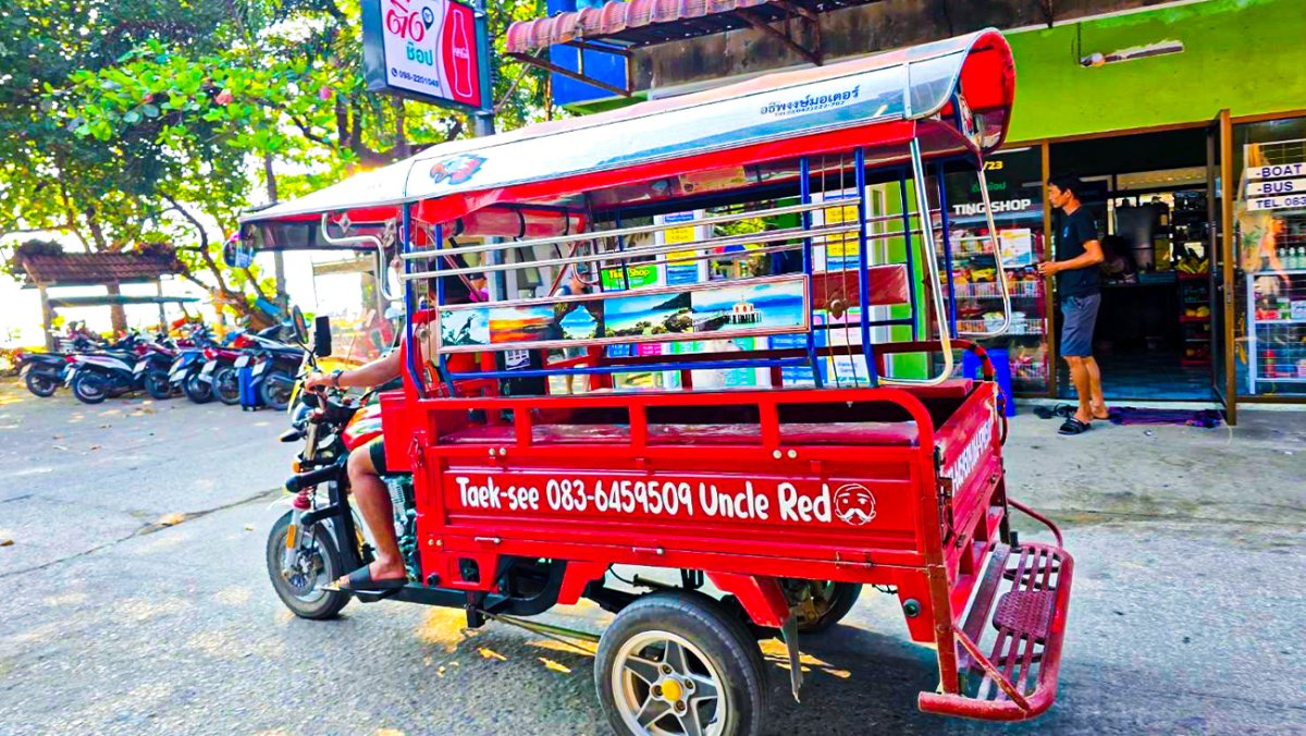 บนเกาะพยาม หากต้องการบริการรถนำเที่ยว สามารถติดต่อคิวรถสกายแลปนำเที่ยวที่ท่าเรือได้มีให้บริการ ราคาครึ่งวันประมาณ 1200 บาท เต็มวัน 1500 -1800 บาท
