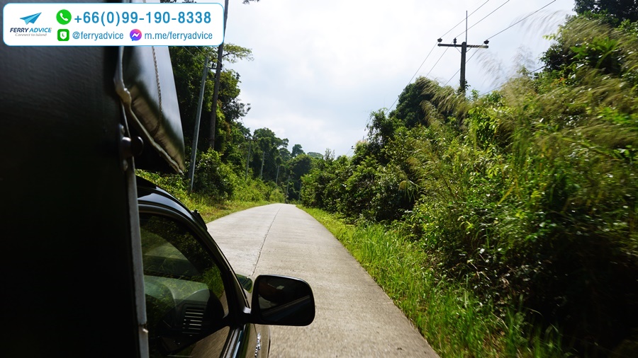 รถสองแถวที่ให้บริการนั่งได้ประมาณ 10-12ที่นั่ง (รวมที่นั่งข้างคนขับ) ใช้เวลาเดินทางจากท่าเรืออ่าวสลัดไปยังรีสอร์ทเฉลี่ยประมาณ 30นาที