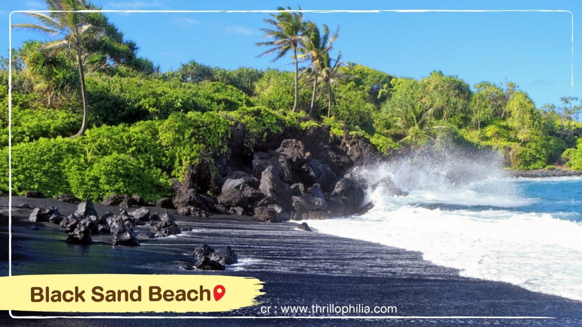 ทรายสีดําตามธรรมชาติ อีกหนึ่งสัญลักษณ์บนเกาะลังกาวี เกิดจากการมีแร่ธาตุบางอย่างที่พบในหินแกรนิตของภูเขารายา ซึ่งตั้งอยู่ค่อนข้างใกล้กับชายหาด พัดพาแร่ธาตุเหล่านี้มายังชายหาดและอีกหนึ่งความเชื่อของคนบนเกาะ เรื่องเล่าขานของการถูกสาปจนทำให้เกาะลังกาวีมีทรายเป็นสีดำ