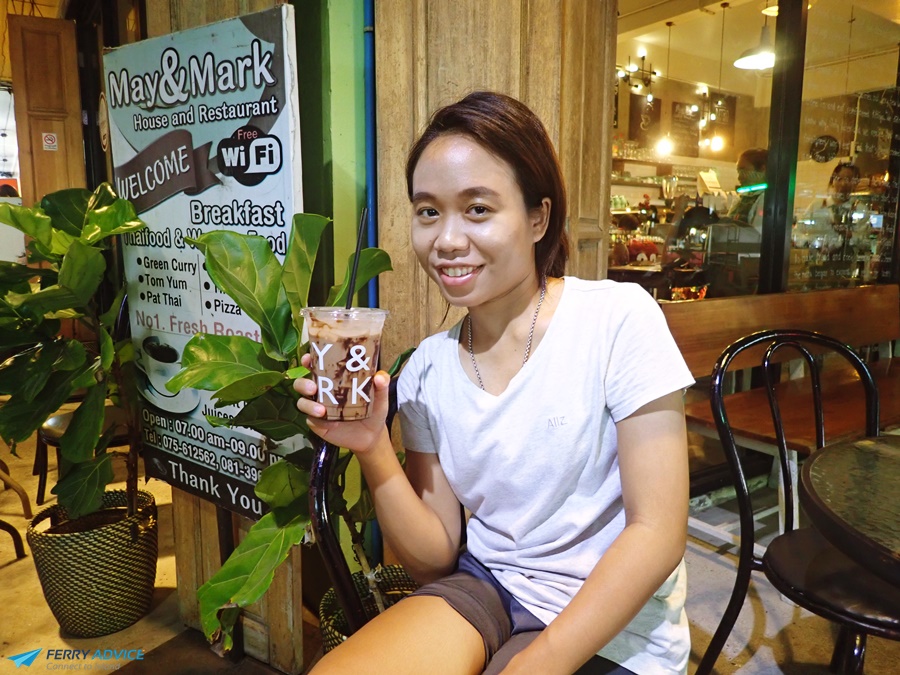 วันนี้มาเดินตลาด krabi night maket กันค่ะ มีร้านกาแฟ อยู่ใกล้ตลาดตรงหัวมุม ชื่อร้าน May & Mark เลยแวะซื้อกาแฟสักหน่อยค่ะ