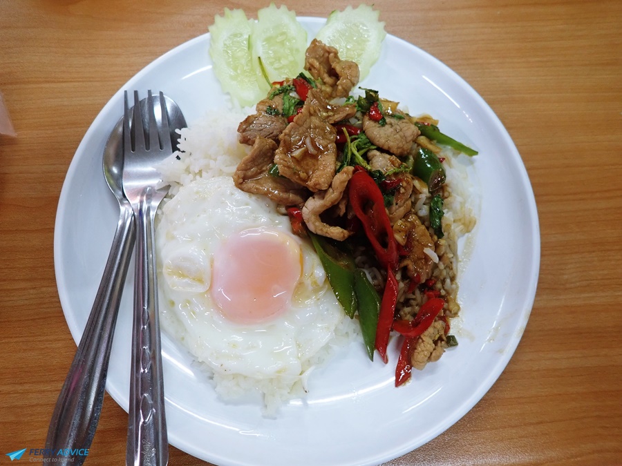 จานนี้ 60 บาท นะจ๊ะ บอกเลยโคตรอร่อย นี้หิวรึเปล่านะ อร่อยจริงๆ ฝรั่งข้างๆ กินซะไม่เหลือ พี่เจ้าของร้านเล่าว่า มากินแล้ว ต้องมาซ้ำ บางคนมา 2-3รอบ มื้อนี้ค่าเสียหาย