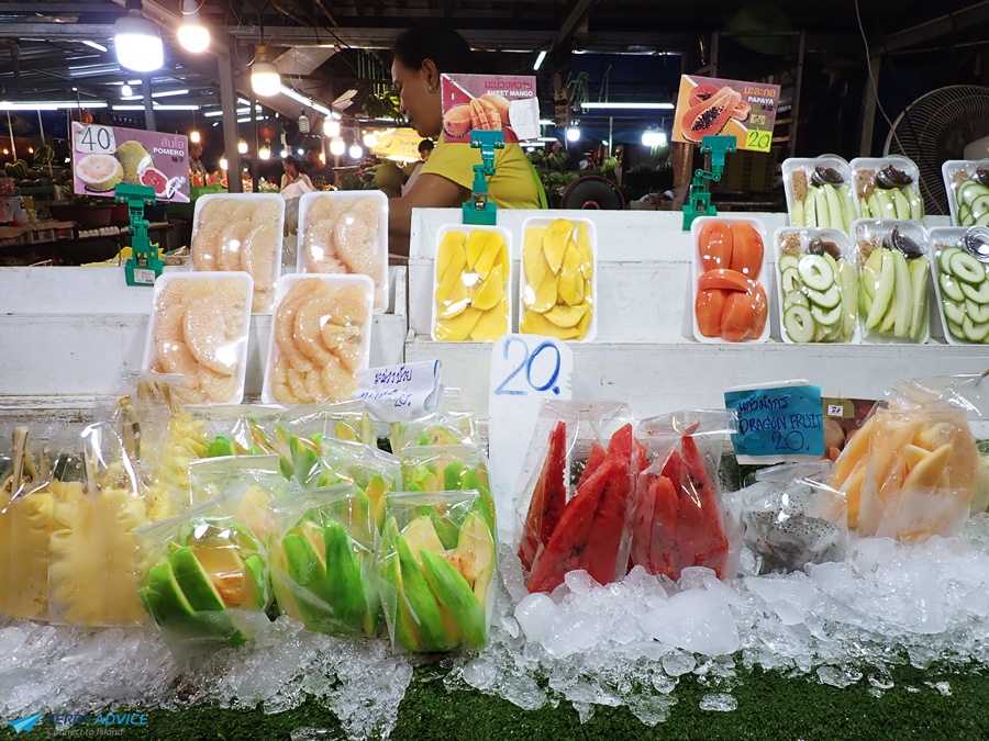 ด้านหน้าตลาด มีผลไม้สดขายนะจ๊ะ ราคาไม่แรงเลย สดและอร่อยด้วย หลังจากอิ่มท้องเรียบร้อยแล้ว ก็กลับห้องไปนอนพุงกาง
