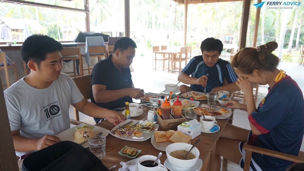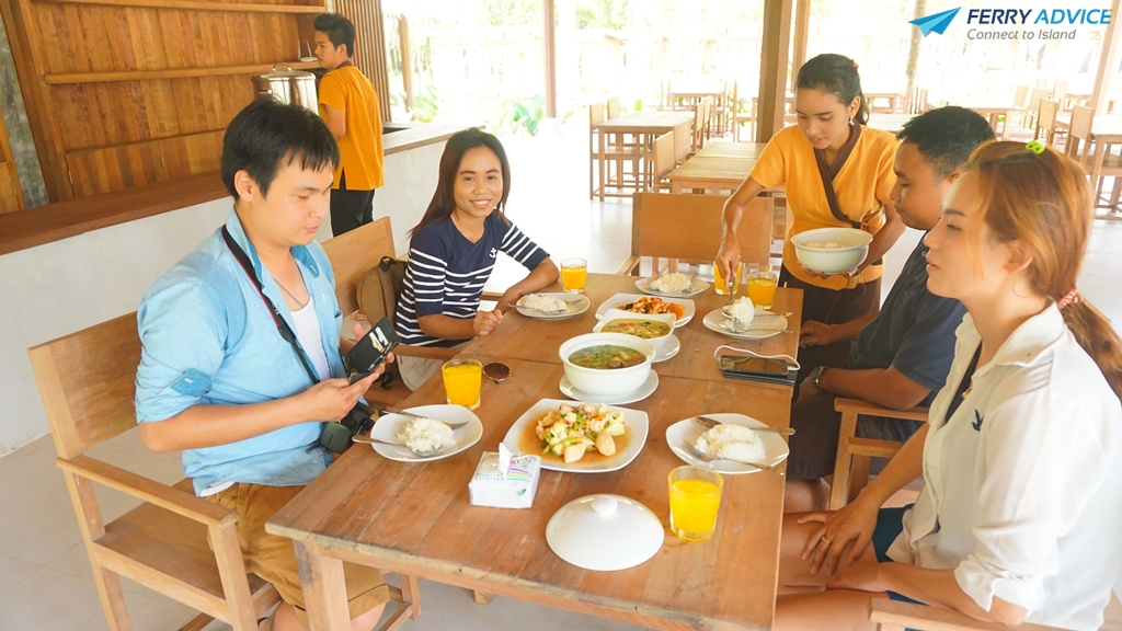 เมื่อมาถึงรีสอร์ทสิ่งแรกที่ต้องทำ คือเก็บประเป๋า และทานข้าวมื้อเที่ยงเราเดินทางมาถึงรีสอร์ทประมาณ 12.30น.ค่ะ รีสอร์ทที่บนเกาะแต่ล่ะรีสอร์ทอยู๋ค่อนข้างไกลกัน ถ้าจะไปหาข้าวทานข้างนอกรีสอร์ทก็ต้องขี่มอไซต์ออกไปค่ะ