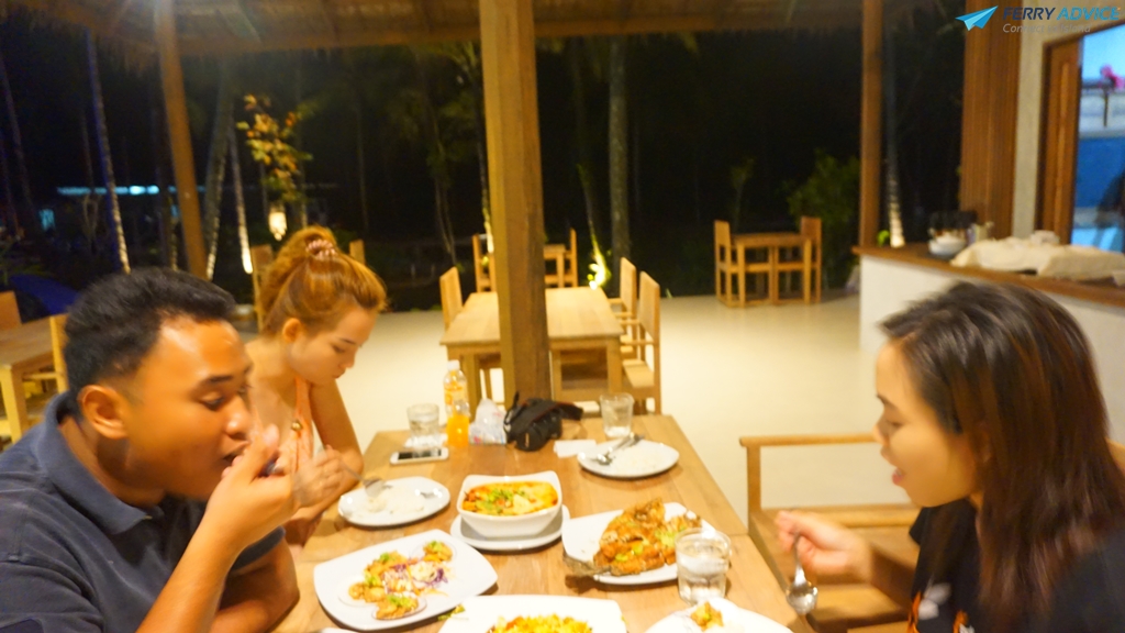 หลังจากเหนื่อยจากการตระเวรรอบเกาะ เราก็กลับรีสอร์ทมาทานข้าวมื้อเย็นค่ะ อาหารของทางรีสอร์ทบอกเลยว่าอร่อยแทบทุกอย่าง กินกันจนเดินไม่ไหวค่ะ