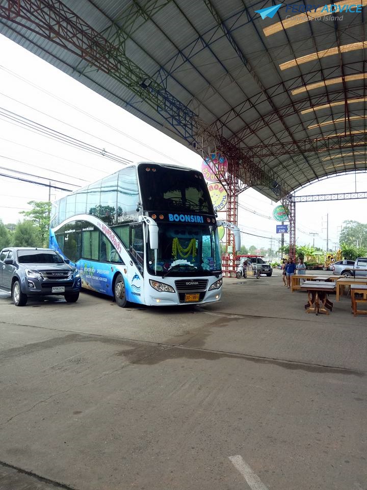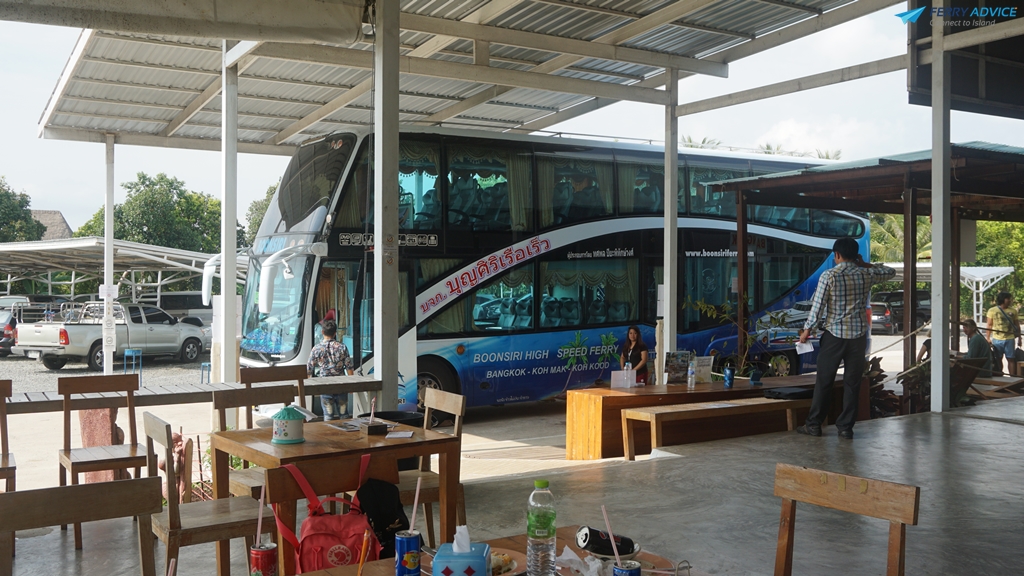 เวลา 05.00 น. ลูกค้าที่จะเดินทางไปยังเกาะกูดให้ไปขึ้นรถตู้บริเวณ ออฟิศบุญศิริเรือเร็ว ถนนข้าวสาร ( ซอย.ถนนตานี) กรณีที่มีลูกค้าเยอะทางเราจะจัดเตรียมรถบัส2ชั้นไปส่งลูกค้าที่ท่าเรือแหลมศอกแทนรถตู้