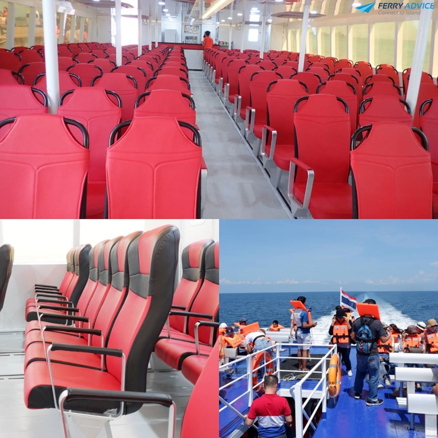 เรือบุญศิริเฟอร์รี่ คาตามารัน หรือ บุญศิริเรือเร็ว เป็นเรือจำนวนที่นั่ง 200 ที่นั่งค่ะ ภายในเรือจะมีทั้งหมด 2 ชั้นรอบตัวเรือ มีกล้อวงจรปิด ภายในตัวเรือมีเครื่องปรับอากาศมีเคาน์เตอร์ขายอาหารขนมเคี้ยวให้บริการ