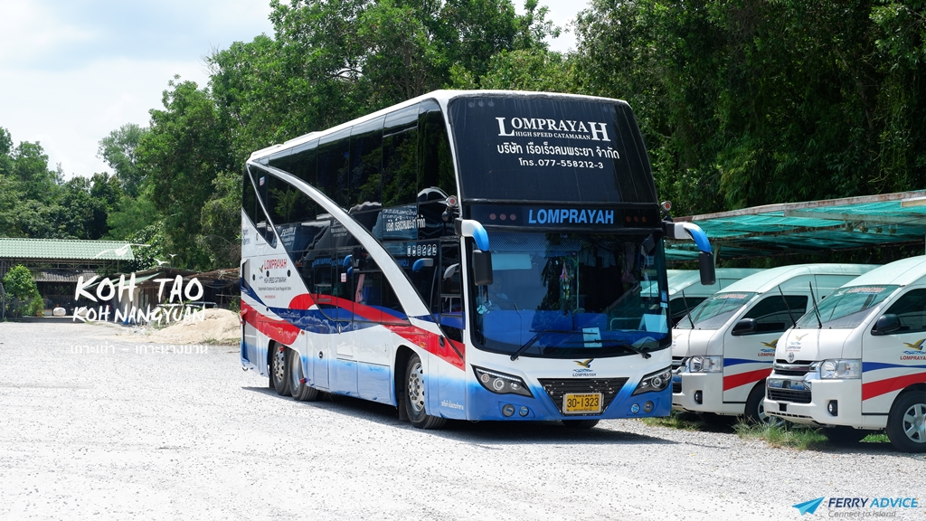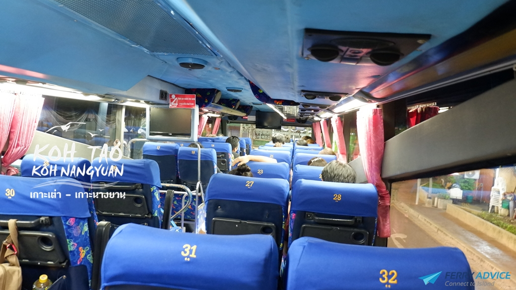 หลังจากทานข้าวเสร็จเราก็เดินมาขึ้นรถบัส ของบริษัทค่ะ รถจะจอดตรงข้ามวัดบวรค่ะ ต้องสอบถามพนักงานด้วยนะค่ะ ว่าเราไปเกาะเต่าให้นั่งรถคันไหน เพราะรถจะออกวิ่งหลายคันค่ะ และเวลาขึ้นรถต้องนั่งตามที่นั่งนะค่ะ ตอน check in พนักงานจะระบุเลขที่นั่งให้เราค่ะ กรณีเราเดินทางมาคนเดียวสามารถแจ้งพนักงานได้ค่ะ ว่าขอนั่งติดหน้าต่างได้มั๊ย เค้าจะจัดที่นั่งให้เราค่ะ และถ้าเราจองตั๋วออนไลน์ในรายการเดียวกันเวลา check in ได้นั่งที่ติดกันแน่นอนค่ะ