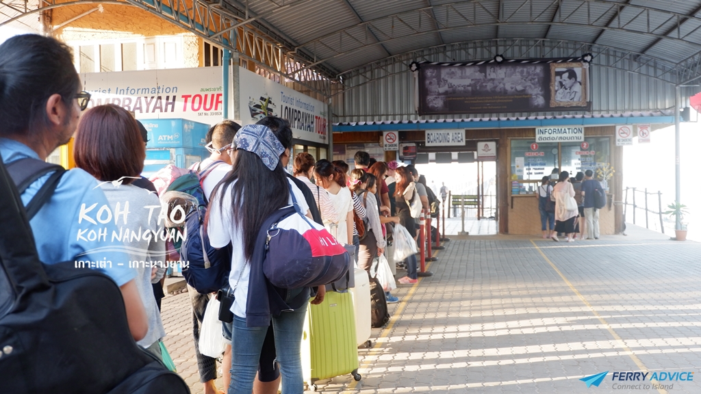 พอถึงเวลาพนักงานจะประกาศให้เข้าแถวเตรียมลงเรือค่ะ ส่วนมากแล้วคนที่จะเดินทางจะจองตั๋วออนไลน์ล่วงหน้าค่ะ เพราะคนเดินทางค่อนข้างเยอะ แม้แต่ช่วง Low Season วันธรรมดาต่อแถวยาวมากๆ ค่ะเรือออกรอบเช้าแต่เรือเต็มเกือบทุกรอบค่ะ มีหลายท่านไม่ได้จองเอาไว้ถ้าเรือเต็มเค้าจะไม่ให้ลงเรือเด็ดขาด เป็นคำสั่งจากกรมเจ้าท่าคะ
