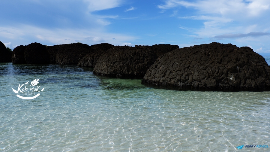เกาะขามจะมีก้อนหินใหญ่ๆสีดำ แปลกตามากค่ะ ปกติไปทะเลบ่อยไม่ค่อยเห็นหินลักษณะนี้ อาจจะเกิดจากการทบถมของตะกอนมาหลายปีหรือเปล่า อันนี้ก็ไม่มันใจนะค่ะ แต่ก็ถือว่าสวยไปอีกแบบค่ะ