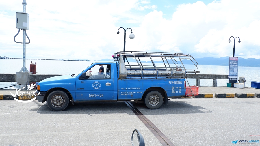 ตอนนี้เราอยู่ที่ท่าเรืออ่าวนิดค่ะ นักท่องเที่ยวที่เดินทางโดยสปีดโบ๊ท จะต้องโทรแจ้งรีสอร์ทล่วงหน้าให้มารอรับที่ท่ารเรืออ่าวนิดค่ะ เป็นบริการฟรีจากรีสอร์ท ซึ่งรีสอร์ทบนเกาะหมากส่วนมาจะมีบริการรับส่งฟรีอยู่แล้วค่ะ หรือถ้าต้องการไปทันทีจะมีรถ Taxi สองแถวจอดรอบริเวณท่าเรือ สนนราคา คนละ 50 บาท ไปได้ทั่วเกาะ คุ้มคะเพราะเค้าต้องพาเราลุยไปส่งยังรีสอร์ท บางแห่งอยู่ไกลมาก เค้าก็ไปคะ