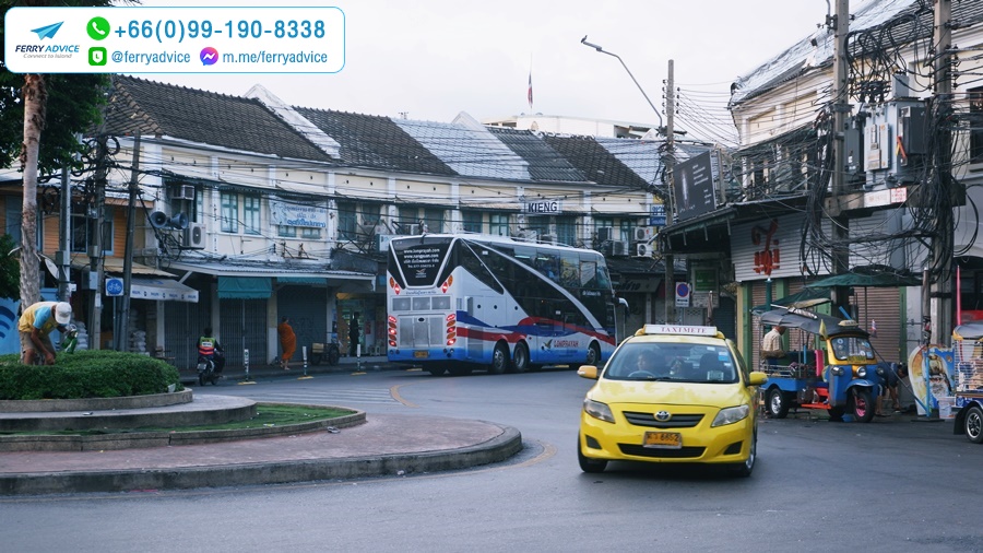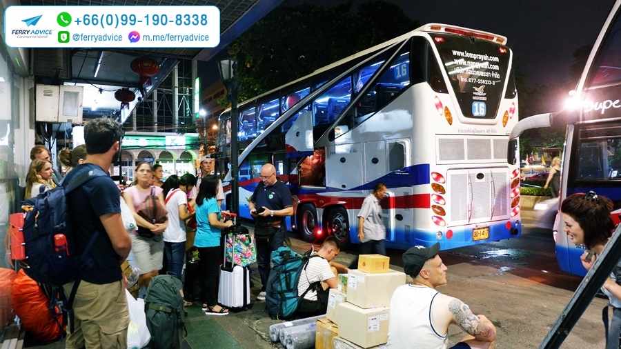 รถบัสจะวิ่งมาส่งนักท่องเที่ยวที่ ท่าเรือลมพระยาชุมพร หรือ ท่าเรือลมพระยาทุ่งมะขามน้อย รถใช้เวลาเดินทางประมาณ 6-7 ชม. มีแวะพักระหว่างทาง 1 ครั้ง ประมาณ 20 นาที