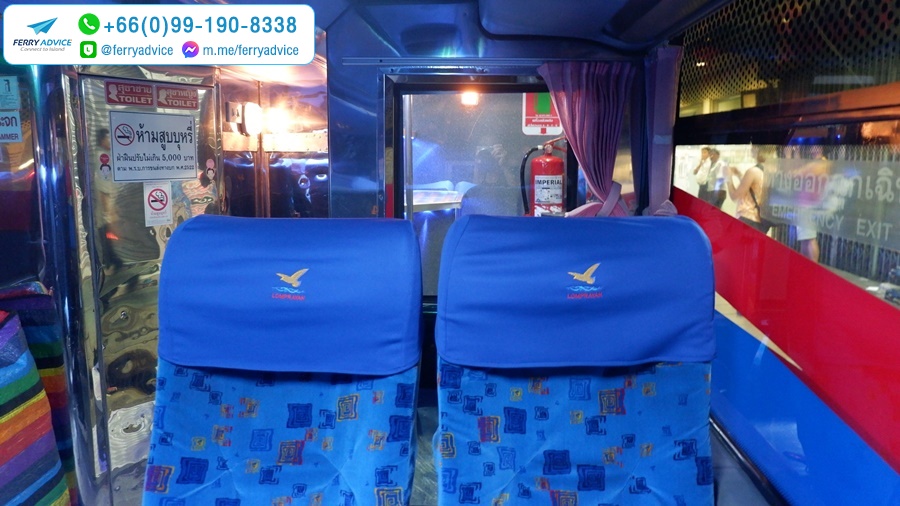 รถบัสที่ให้บริการของ บริษัทเรือเร็วลมพระยา เป็นรถบัส 2 ชั้น 44 ที่นั่ง ภายในเป็นห้องปรับอากาศ มีห้องน้ำ ปรับเบาะเอนนอนได้เล็กน้อย มีผ้าห่มให้บริการ แจะนำส่วนตัวไปด้วยก็ได้ค่ะ มีเด็กประจำรถ1คน