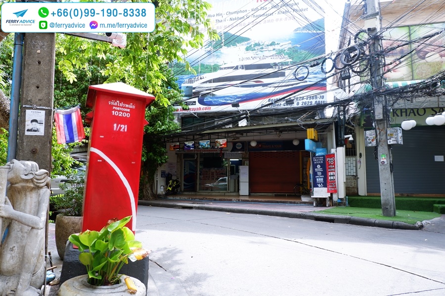 ออฟฟิศลมพระยาถนนข้าวสาร รถบัสไม่สามารถวิ่งเข้า ซอยไปจอดรับนักท่องเที่ยวได้ รถบัสจะมาจอดรอที่ตรงข้ามวัดบวร รถจะจอดที่หน้า ธนาคารทหารไทย ( TMB Bank )