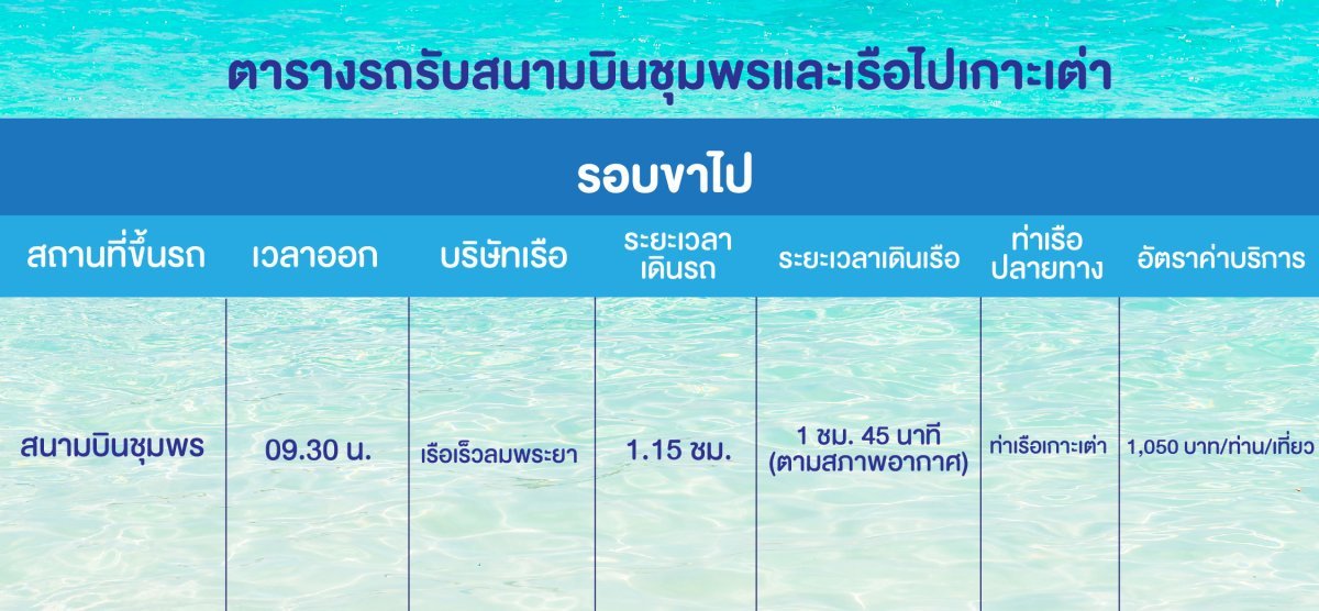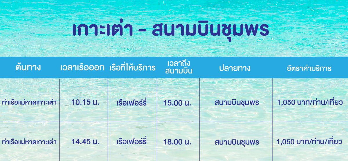 ตารางเรือไปเกาะเต่าจากสนามบินชุมพร
