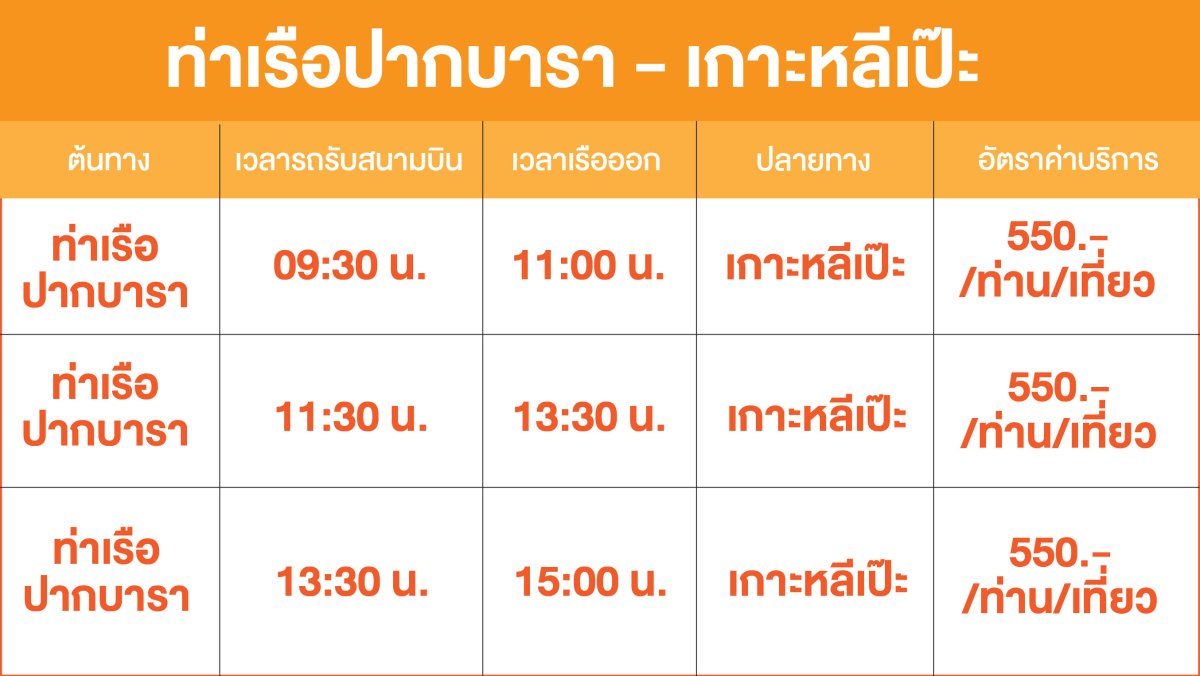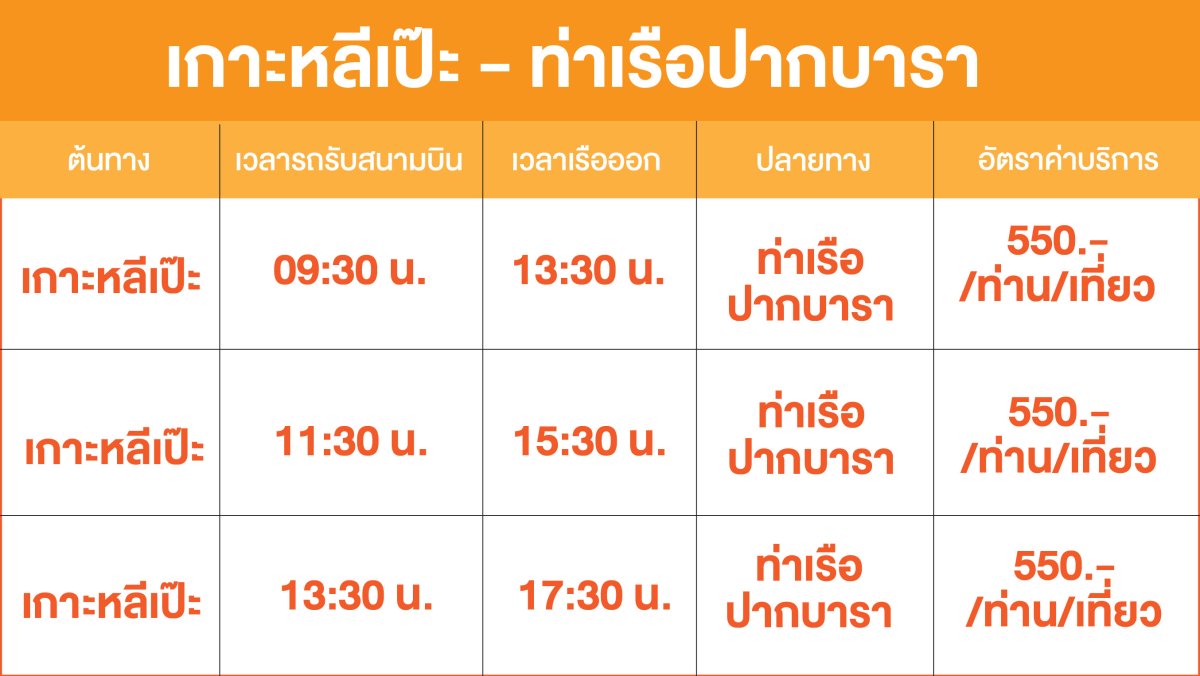 ตารางเรือจากท่าเรือปากบาราไปเกาะหลีเป๊ะ สำหรับนักท่องเที่ยวที่เิดนทางด้วยรถยนต์ส่วนตัวสามารถขับรถยนต์ส่วนตัวมาฝากที่ท่าเรือได้ มีค่ารับฝากวันล่ะ 100 บาท