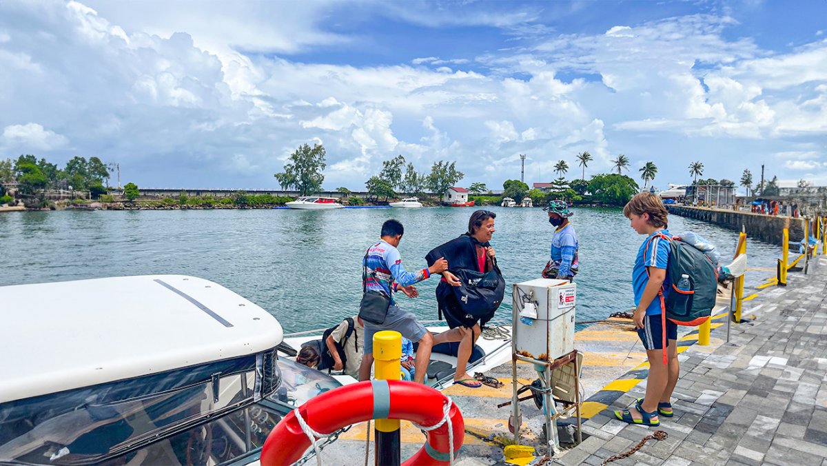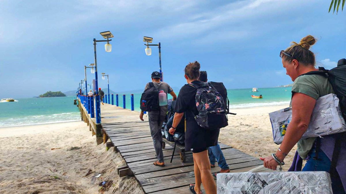 เรานั่งเรือจากสีหนุวิลล์ เรือมาส่งที่ท่าเรือหน้ารีสอร์ทเลย ลงเรือเดินเข้ารีสอร์ทได้เลย พนักงานรีสอร์ทจะมารอรับที่ท่าเรือ หรือถ้าพักรีสอร์ทอื่น ก็มีบริการรถมอไซต์ รถตุ๊กๆ ไปยังรีสอร์ทได้ค่ะ