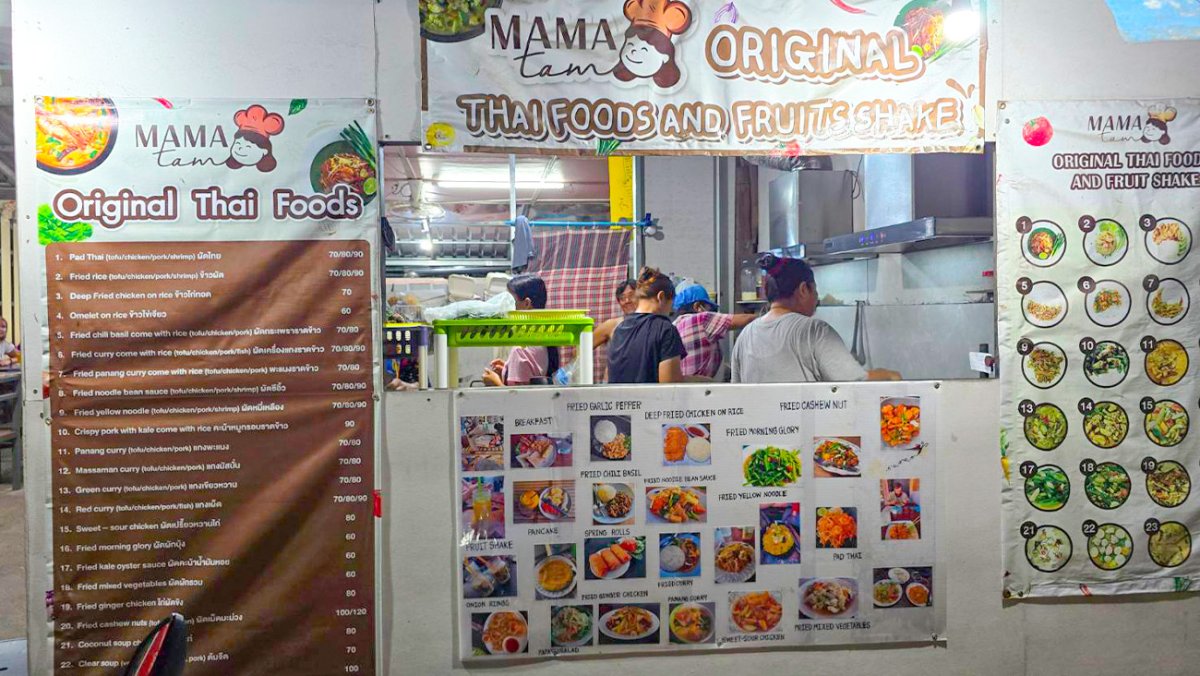 ร้าน MAMA TAHI FOOD อยู่บริเวณหาดทรายรี อันนี้ร้านแนะนำเลยนะ สำหรับอาหารตามสั่งราคาไม่แรง ขับมอไซต์มาจอดหน้าร้านได้เลย ฝรั่งเยอะมาก