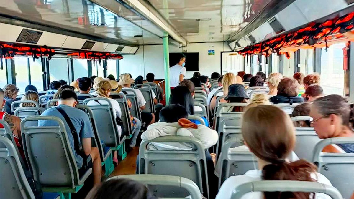 ภายในเรือโดยสารเป็นที่นั่งปรับอากาศ มีเครื่องดื่มและขนมจำหน่ายบนเรือ มีห้องน้ำให้บริการ