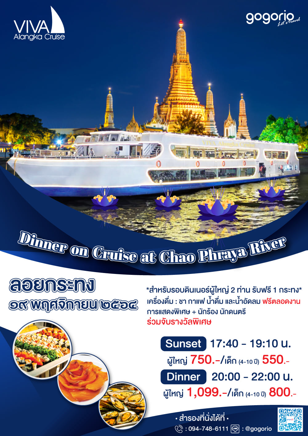 ล่องเรือดินเนอร์เจ้าพระยา ราคาหลักร้อย บุฟเฟ่ต์ โปรโมชั่นเดือนพฤศจิกายน - ธันวาคม 2564 ล่องแม่น้ำเจ้าพระยา ดินเนอร์
