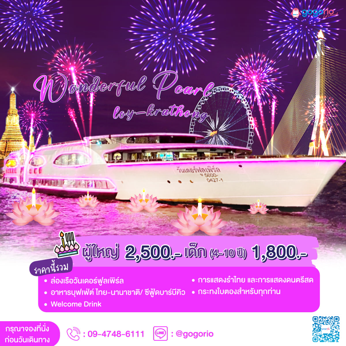 2500.- ผู้ใหญ่/ 1800.- เด็ก4-10ปี เรือรอบ DINNER 19:30-22:00